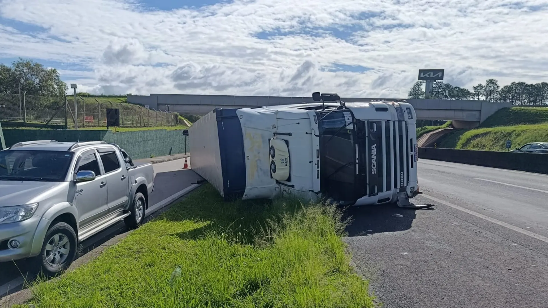 Carreta tomba na Rodovia Itu/Porto Feliz e deixa uma pessoa ferida