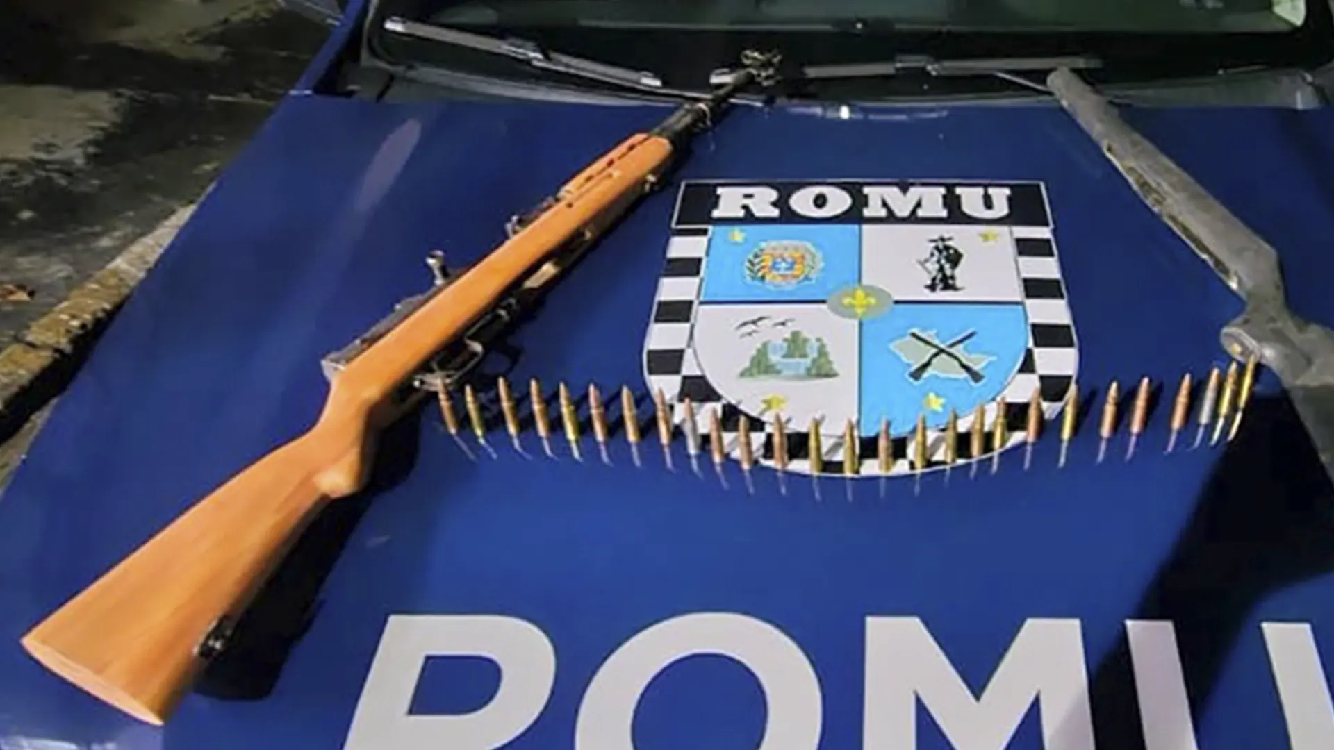 Guardas-civis municipais localizaram um fuzil no interior de um carro estacionado na Avenida Walter Nardelli, no Jardim Santa Marta, em Salto e prenderam dois homens