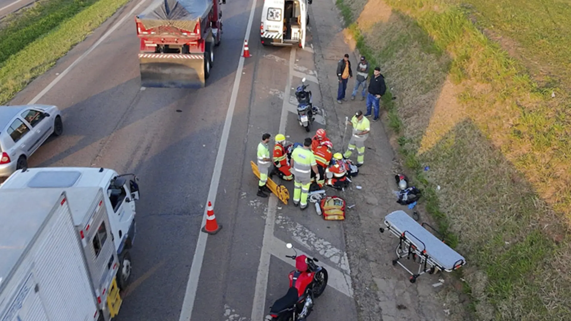 Passageiro morre atropelado em acidente que envolveu 3 motocicletas na SP-75