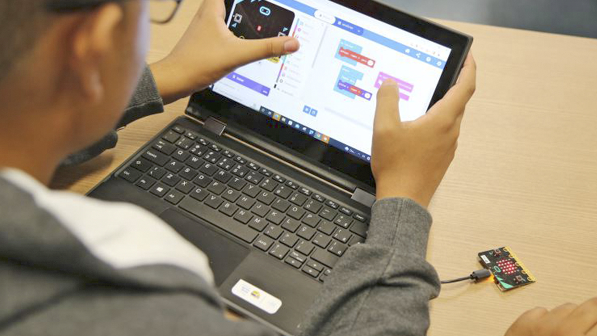 No primeiro módulo, para o desenvolvimento das atividades práticas, os estudantes vão aprender a manusear um editor de programação por blocos e criar projetos na placa processadora Micro:bit. Também receberão material didático desenvolvido pela Fundação Micro:bit e adaptado pelo Sesi.