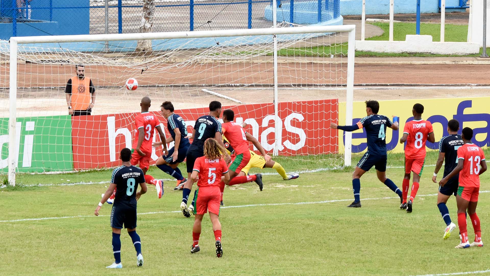 Lance em que o zagueiro Cruz abre o placar para o Sfera (Foto: Rodrigo Hauser)